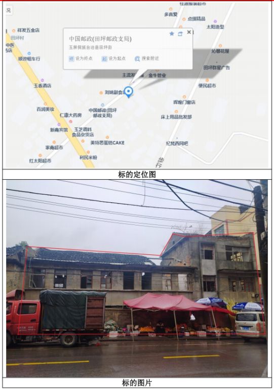 標(biāo)的位于玉屏侗族自治縣田坪鎮(zhèn)中街的兩棟房地產(chǎn),證載建筑面積共計(jì)756.69㎡,證載宗地面積884.94㎡。房屋結(jié)構(gòu):混合結(jié)構(gòu),房屋總層數(shù)均為2層。