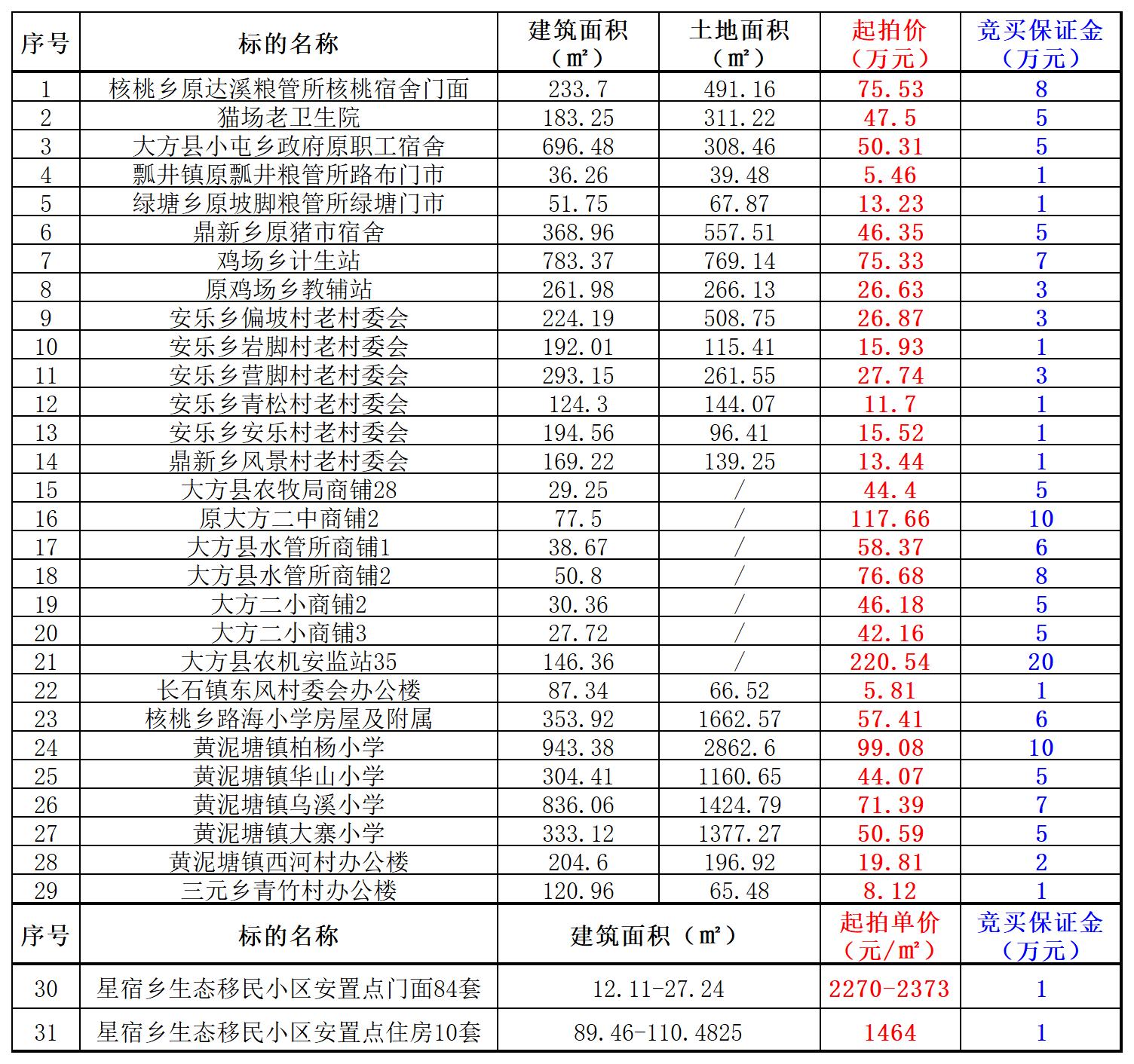 【12月17日】大方縣城、核桃鄉(xiāng)、貓場(chǎng)鎮(zhèn)、瓢井鎮(zhèn)、綠塘鄉(xiāng)、鼎新鄉(xiāng)、安樂(lè)鄉(xiāng)、長(zhǎng)石鎮(zhèn)、雞場(chǎng)鄉(xiāng)、三元鄉(xiāng)、黃泥塘鎮(zhèn)、星宿鄉(xiāng)房地產(chǎn)拍賣(mài)公告