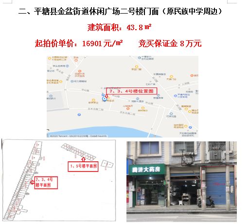 二、平塘縣金盆街道休閑廣場二號樓間1間門面(建筑面積:43.8㎡)