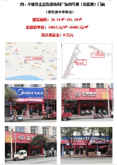 四、平塘縣金盆街道休閑廣場四號樓(競能樓)13間門面(建筑面積:34.14㎡-151.19㎡)