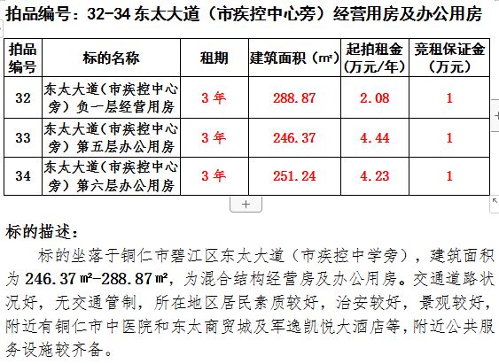 10、銅仁市碧江區(qū)東太大道249號辦公室3年租賃權(建筑面積:674.94㎡);起拍租金單價:26.18萬元/年;競租保證金:3萬元;